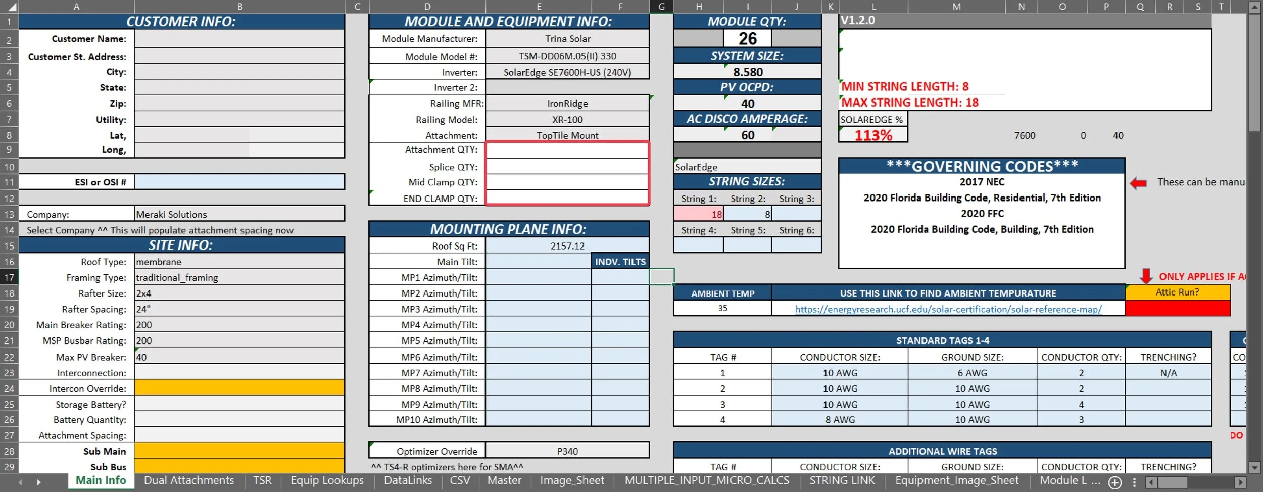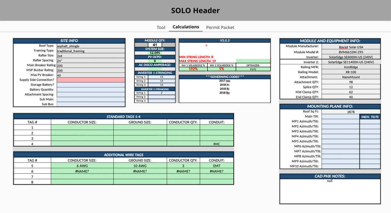 Screenshots of SOLO’s process and part of the custom Excel sheets used by SOLO Engineers